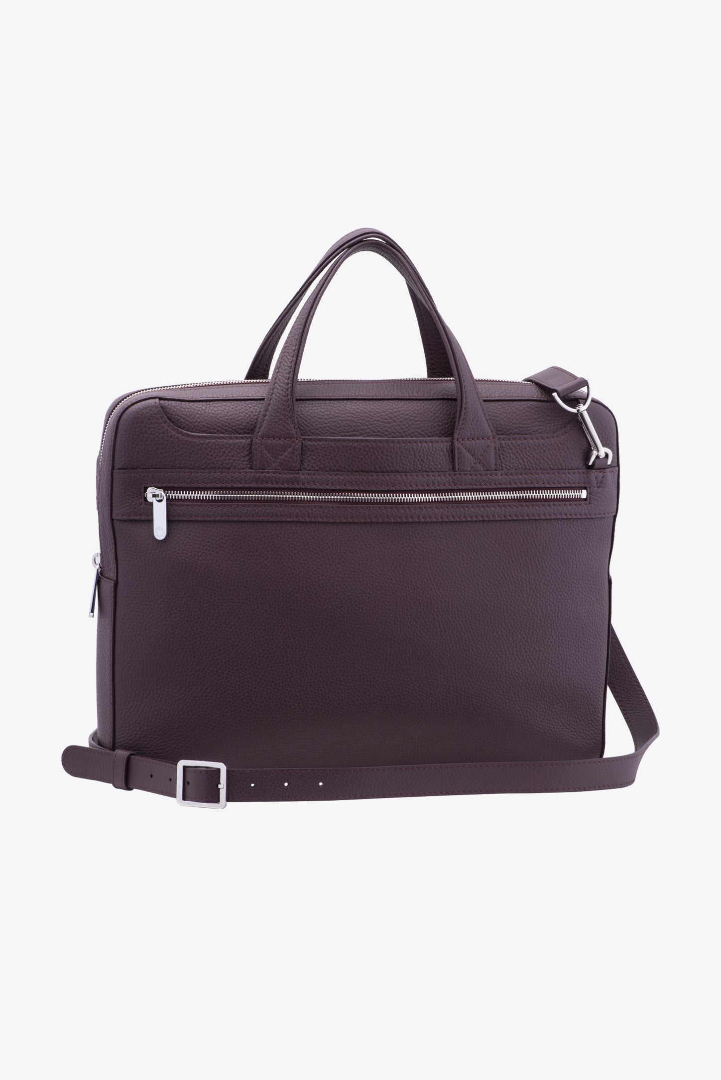 Custom crafted with soft, sustainable Italian leather in grey textured Italian leather, the Neri Karra mens leather briefcase offers function and classy style in one elegant package. Detailed with our signature palladium-coated hardware for durability, this briefcase features a compact silhouette with space for your daily business essentials and devices, multiple pockets for small things and exterior pockets for extra storage.