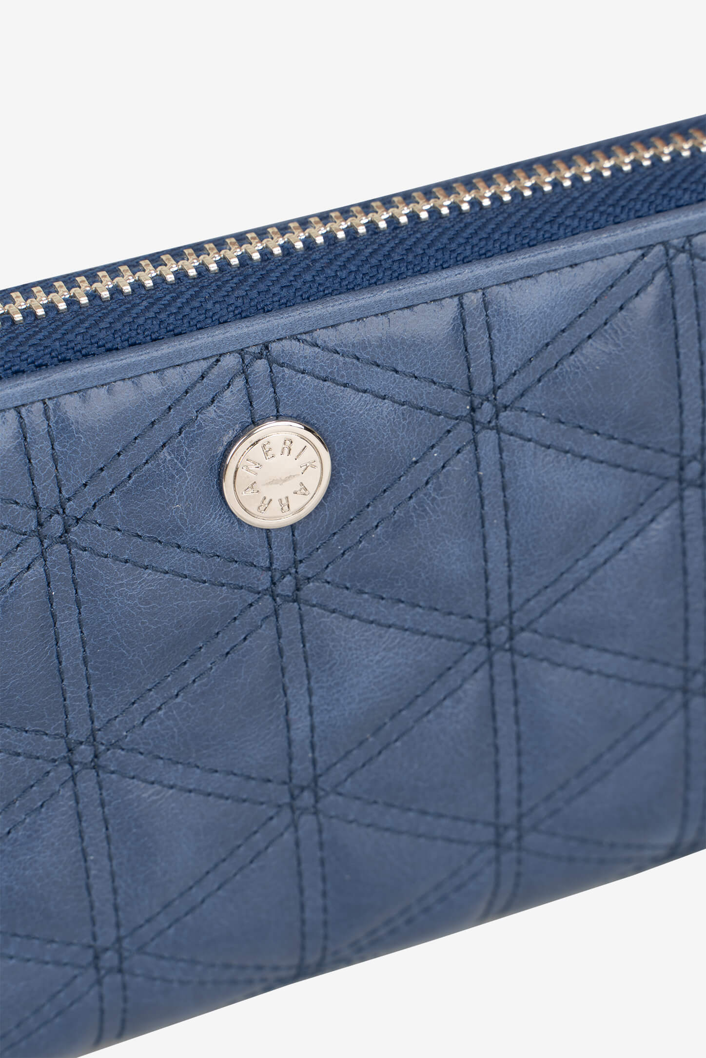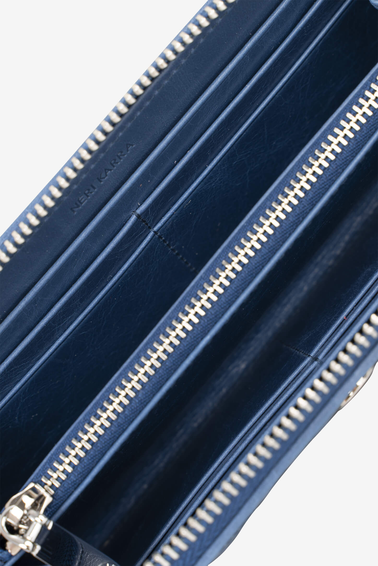 A daywear portfolio essential that offers both style and purpose, the Neri Karra long wallet is a handcrafted masterpiece that deserves a place in your collection. Luxurious Italian leather in a stunning blue shade adds a pop of style while palladium-coated hardware offers years-long durability.