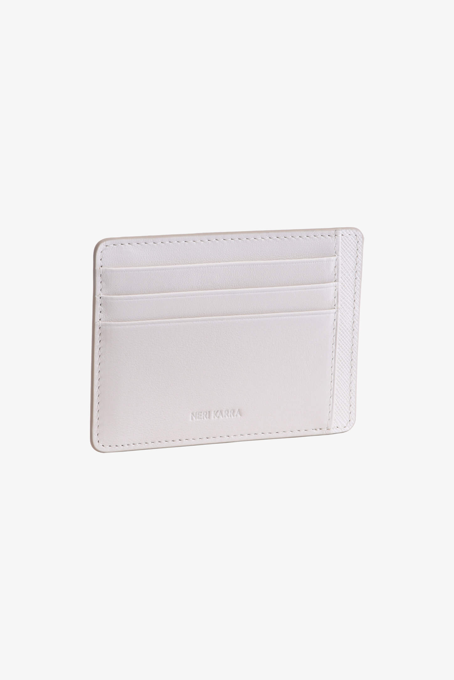 Hold all your credit cards in one fashionable and timeless piece with the Neri Karra leather cards holder in a subtle ivory shade that’s perfect for those loving an understated and elegant vibe. Crafted using fine Italian leather and hand-stitched for durability, this holder features 3 pockets on each side for easy access to your cards while on the go.